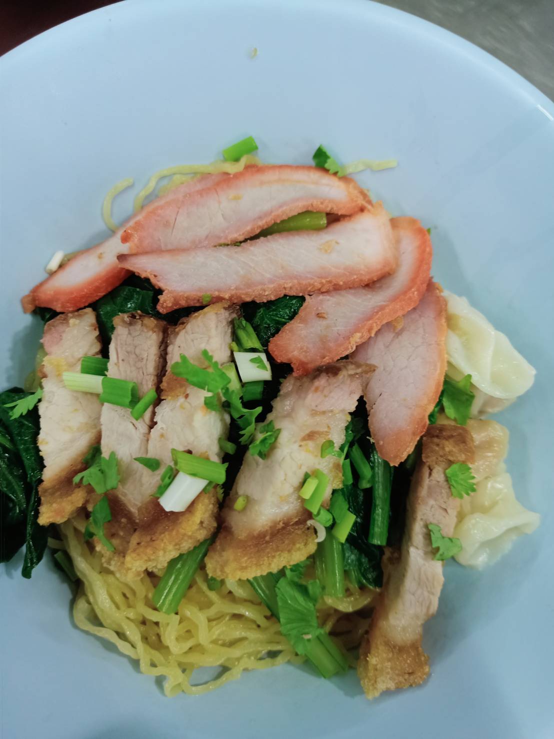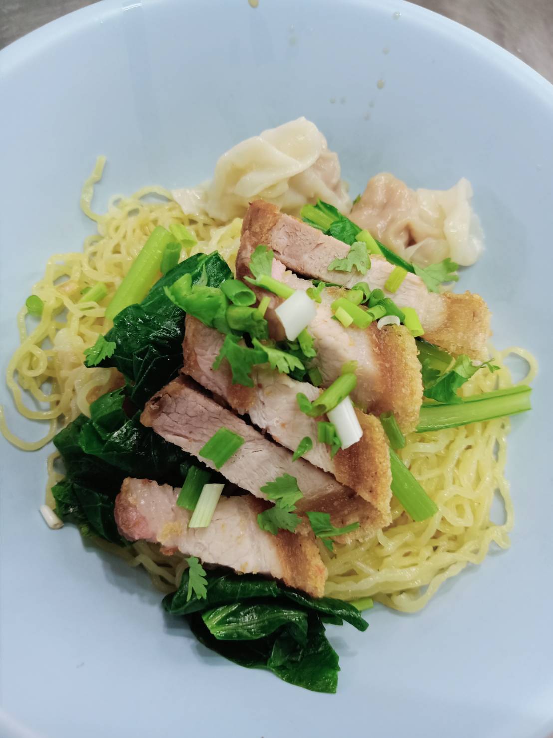 บะหมี่เกี๊ยวหมูกรอบหมูแดง