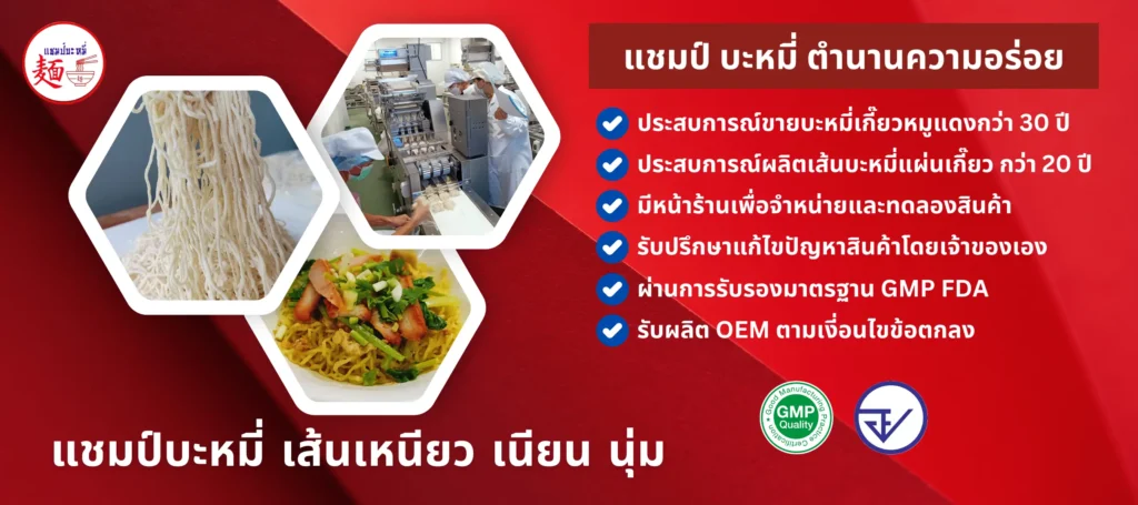 ด้วยประสบการณ์ผลิตและจำหน่ายมากกว่า 30 ปีของแชมป์บะหมี่