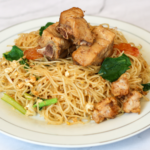 จานผัดที่เต็มไปด้วยรสชาติและความหลากหลาย เส้นบะหมี่ผัดกับเนื้อสัตว์ เช่น ไก่ หมู หรือกุ้ง พร้อมด้วยผักสด เช่น คะน้าและแครอท เคลือบด้วยน้ำมันหอยและซอสปรุงรส โรยพริกไทยเพื่อเพิ่มความเผ็ดอ่อน ๆ เมนูนี้สามารถเพิ่มไข่ไก่หรือเต้าหู้เพื่อให้เหมาะกับผู้ที่ต้องการอาหารเพื่อสุขภาพ