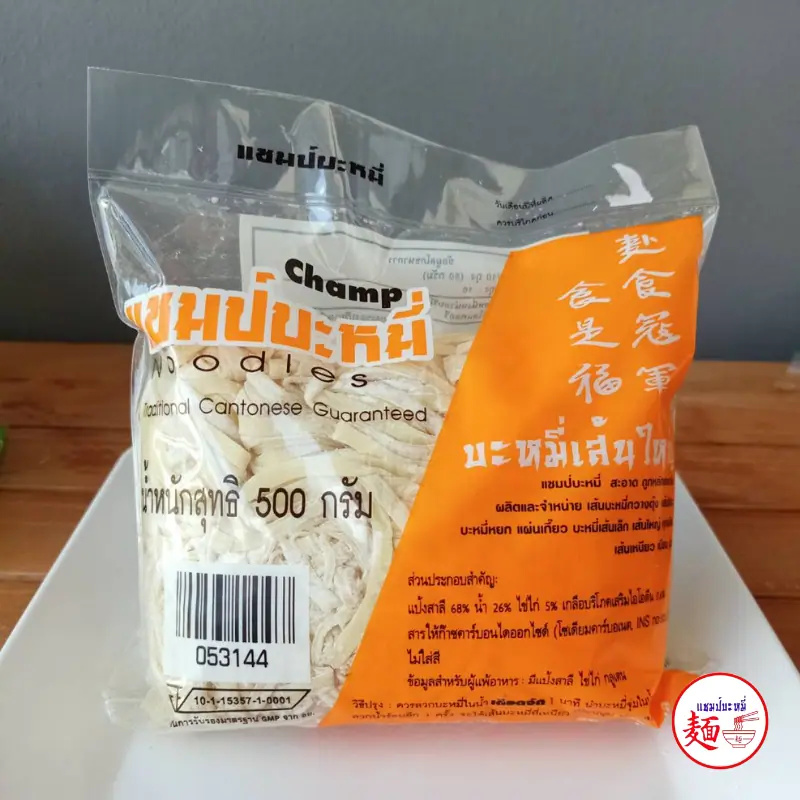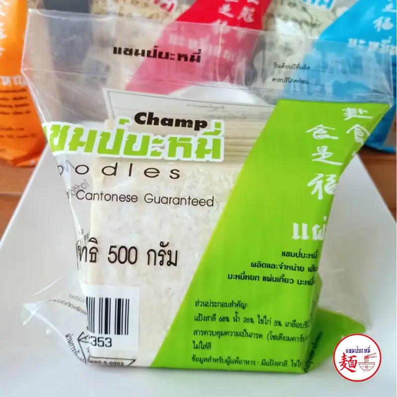 เส้นบะหมี่เส้นใหญ่ (บะหมี่เป๊าะ) แชมป์บะหมี่ ขนาด 500 กรัม CMP0008 แผ่นเกี๊ยว แชมป์บะหมี่ ไซส์ใหญ่ ขนาด…